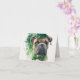 Happy St. Patrick's Day card with a dog wearing a top hat and a bow-tie. This is a folded greeting card. The inside says: Happy St. Patrick's Day.