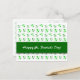 A Happy St. Patrick's Day custom postcard with a simple elegant shamrock pattern in Irish greens with three-leaved clovers. Click Customise It to change fonts, background colours and more.