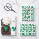 Happy St Patricks Day Dog Four Leaf Clover Green Wrapping Paper Sheet