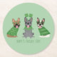 Happy St Patricks Day French Bulldogs Round Paper Coaster