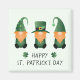 This is a fun illustration of garden gnomes styled for St. Patrick's day. They feature four leaf clovers and a bright orange beard.