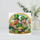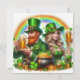 Happy St Patrick's Holiday Card with Irish Man and Lady Drinking Beer, Pots of Gold, Clovers and a Rainbow