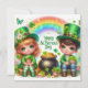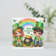 Happy St Patrick's Holiday Card with a Cute Boy and Girl, Pots of Gold, Clovers, Flowers, Animals and a Rainbow
