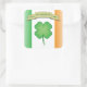 This is a Happy St. Patrick's Day Button depicting Ireland's Flag and a Four Leaf Clover in the Middle.