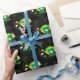 Happy St. Patrick's day wrapping paper, this design have a black horseshoe, green clover, lucky leprechaun hat and typography lettering