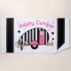 This beach towel will make you happy even if you're not camping with a cute black, white and pink striped trailer, hearts, stars and little birds and flowers.