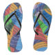 Wearing this happy coloured pair of flip flops will cheer you up by even looking at it, not withstanding wearing it! The design is based on an abstract painting using all the summer colours you can think of!