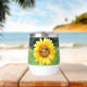 This custom thermal tumbler is designed with a unique image of a "smiling" Sunflower, courtesy of a well-timed visit by a pair of bees. The tumbler holds 11 ounces, is made of stainless steel, and is double insulated to maintain your drink at a soothingly hot or refreshingly cold temperature. The stemless design makes for incredible durability and ease of use as it fits flawlessly in your hand. It has a secure-fitting, leak-proof lid for worry-free transportation, making it the perfect companion for picnics, outdoor gatherings, or simply lounging in the comfort of your own home. Feel free to contact me through Zazzle if you have questions about this tumbler or would like help transferring this image to a different item. I'm happy to help to ensure the image fits correctly.