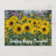 My original artwork is featured on this lovely floral postcard, consisting of my original photograph of sunflowers in a garden, processed into an illustrated, watercolor style with a touch of whimsy. The front has the words "Sending Happy Thoughts!". These postcards are printed on nice Italian paper and are qualified by the US Postal Service to use with or without an envelope (which is included with this postcard). They have a semi-gloss finish to protect in the mail process. Send flowers economically with this card!