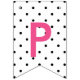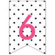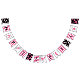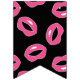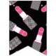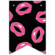 Makeup-themed happy sweet 16 bunting flags in pink, white, and black, featuring glossy pink lips, lipstick, polka dots, and stripes.