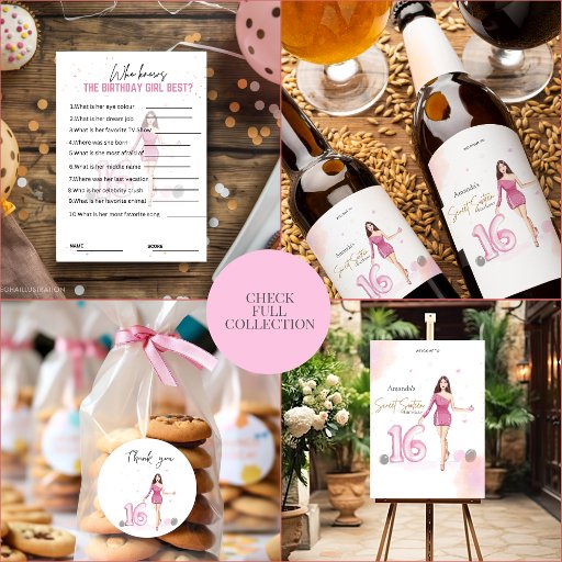 happy sweet 16th, happy birthday, pink illustration.