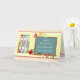 Cute happy teacher retirement personalised chalkboard illustration, from students greeting card! This fun fold over card style greeting card features an illustration art drawing of books, a chalkboard an apple and letters and numbers too! All things that remind us of a teacher! It is a wonderful card for students or a class to send in celebration of their favourite teacher and his or her retirement! The blackboard on the front of the card reads "Happy Retirement" and is ready for you to personalise with a teacher name, and classroom. If you would like to edit or change the font location, style, size or colours simply click on "customise" under the product image on this page and those details will also be made available to you! For more teacher retirement cards and gifts please visit out shop!