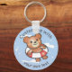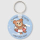 Adorable smiley teddy on holiday. Custom text keychain great for kids pool parties and holiday clubs.