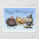 Happy Thankgiving Card With Pilgrim And Turkey