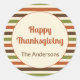 Happy Thanksgiving Autumn Colours Stripes Classic Round Sticker