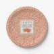 Add a classic touch to your holiday table while making clean up a breeze! These custom paper plates are printed with a modern all-over leaf pattern in cream and orange. Centred on the plate is a cream rectangle printed with the words 'Happy Thanksgiving'. Below the text is a pumpkin arranged with autumn botanicals - leaves, berries, twigs, an acorn and a pine cone - adding a harvest touch to the design. The text is editable - just use the easy, provided templates if you would like to change the message.