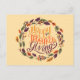 This beautiful and modern Happy Thanksgiving greetings postcard design features a colourful fall/ autumn leaves wreath and "Happy Thanksgiving" stylish Typography on cream background . You can write something or wishes for your special ones or family and friends and you can change background colour.