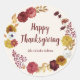 Happy Thanksgiving Burgundy Gold Floral Wreath Classic Round Sticker