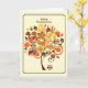 Happy Thanksgiving card with a tree, owls, pumpkins and leaves.