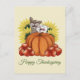 Happy Thanksgiving Cats with Pumpkin and Sunflower Postcard
