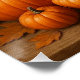 Celebrate the season of gratitude with this beautifully illustrated Happy Thanksgiving poster, featuring a rustic cornucopia overflowing with pumpkins, gourds, grapes, and golden maize, and framed with rich autumn leaves in warm tones.