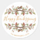 HAPPY THANKSGIVING CUTE WATERCOLOR FALL FOLIAGE CLASSIC ROUND STICKER