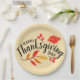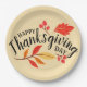 Happy Thanksgiving Day Botanical Fall Beige Leaves Paper Plate