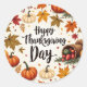 Add a festive touch to your Thanksgiving celebration with these Happy Thanksgiving Day Classic Round Stickers. Featuring charming autumn elements like pumpkins, colourful leaves, and a warm 'Happy Thanksgiving Day' message, these stickers are perfect for sealing holiday cards, decorating gift packages, or adding a seasonal accent to party favours. Easy to apply and made from durable materials, these round stickers are a fun and festive way to spread Thanksgiving cheer wherever you use them.