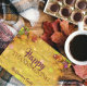 Personalised Thanksgiving postcard design featuring maple leaves, raindrops and lights on a paper background. The text is fully customisable. To change it use the Personalise option. For more changes, such as changes to the font, font colour or text layout, use the Edit design tool option.