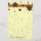 Happy thanksgiving stationery in elegant shades of beige, yellow, brown, and red with festive fall leaves pattern. Perfect for holiday letters, also available in matching envelopes, postage, cards and labels.