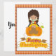 This design features a cute girl sitting in a giant pumpkin with the text "Happy Thanksgiving". It is perfect to greet your daughter, granddaughter, nieces, sister, friends, and family members for Thanksgiving. You can customise your messages inside the card.