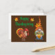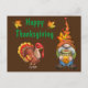 A Happy Thanksgiving Greeting Postcard Designed With Turkey And Fall Gnome