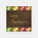 Modern minimalist Happy Thanksgiving illustration featuring an abstract and trendy vintage style rustic background with colorful grunge autumn leaf shapes in green, yellow, red and brown with greeting.