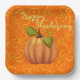Happy Thanksgiving Orange and Yellow Swirls Square Paper Plate