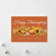 This orange company holiday card features a vintage drawing of pumpkins, fall leaves, and cute autumn sunflowers. Nostalgic Happy Thanksgiving cards with brown script of your business name and personalized professional message on the back for clients and friends.