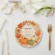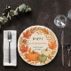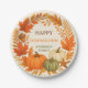 Happy Thanksgiving pumpkins fall foliage beige Paper Plate