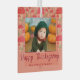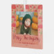 Happy Thanksgiving Red Mushroom Fall Photo Glass Ornament. A lovely red mushroom pattern in fall colours. Personalise the ornament with your photo, family name and year. A lovely personalised Thanksgiving holiday keepsake.