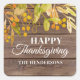 These Thanksgiving stickers are decorated with watercolor fall leaves in autumn colours on a barn wood background with stylish typography.