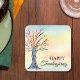 These Happy Thanksgiving paper coasters are decorated with a colourful mosaic family tree on a watercolor background.
