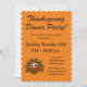 Happy Thanksgiving Turkey Day dinner party custom invitations. Simple Holiday invites with funny turkey cartoon and whimsical typography template. Cute bird illustration with orange and brown fall background colours. Fun design for family reunion , gathering, meeting etc.