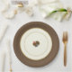 Thanksgiving paper plates decorated with a colourful turkey in the centre on an ivory background with a new shade of Latte Brown colour rim and inner trim colour.