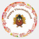 Happy Thanksgiving Turkey surrounded Fall Leaves Classic Round Sticker