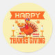 Happy Thanksgiving Turkey with Pie Classic Round Sticker