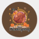 Happy Thanksgiving typography with a Turkey, autumn leaves and pumpkins, to celebrate thanksgiving and be thankful for everything.