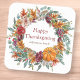 Happy Thanksgiving Watercolor Fall Pumpkin Wreath Square Sticker
