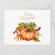 Happy Thanksgiving Watercolor Pumpkin and Berries Postcard