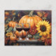 Happy Thanksgiving postcard with wine fall foliage and sunflowers. A pretty autumn coloured foliage.