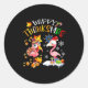 Happy Thanksmas Flamingo Couple Thanksgiving Chris Classic Round Sticker