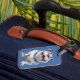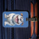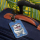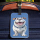 An Adorable Happy Bulldog Cartoon Themed Luggage Tag In Blue For Travelling