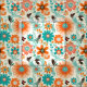 Transport yourself to a bygone era with our retro floral pattern, adorned with vibrant orange and turquoise blooms. This design captures the essence of nostalgia with its playful yet timeless colour combination. Whether you're reviving a room's decor or looking for a vintage-inspired fashion statement, this pattern adds a touch of whimsy and charm. Embrace the spirit of yesteryears with this delightful fusion of colours and style.